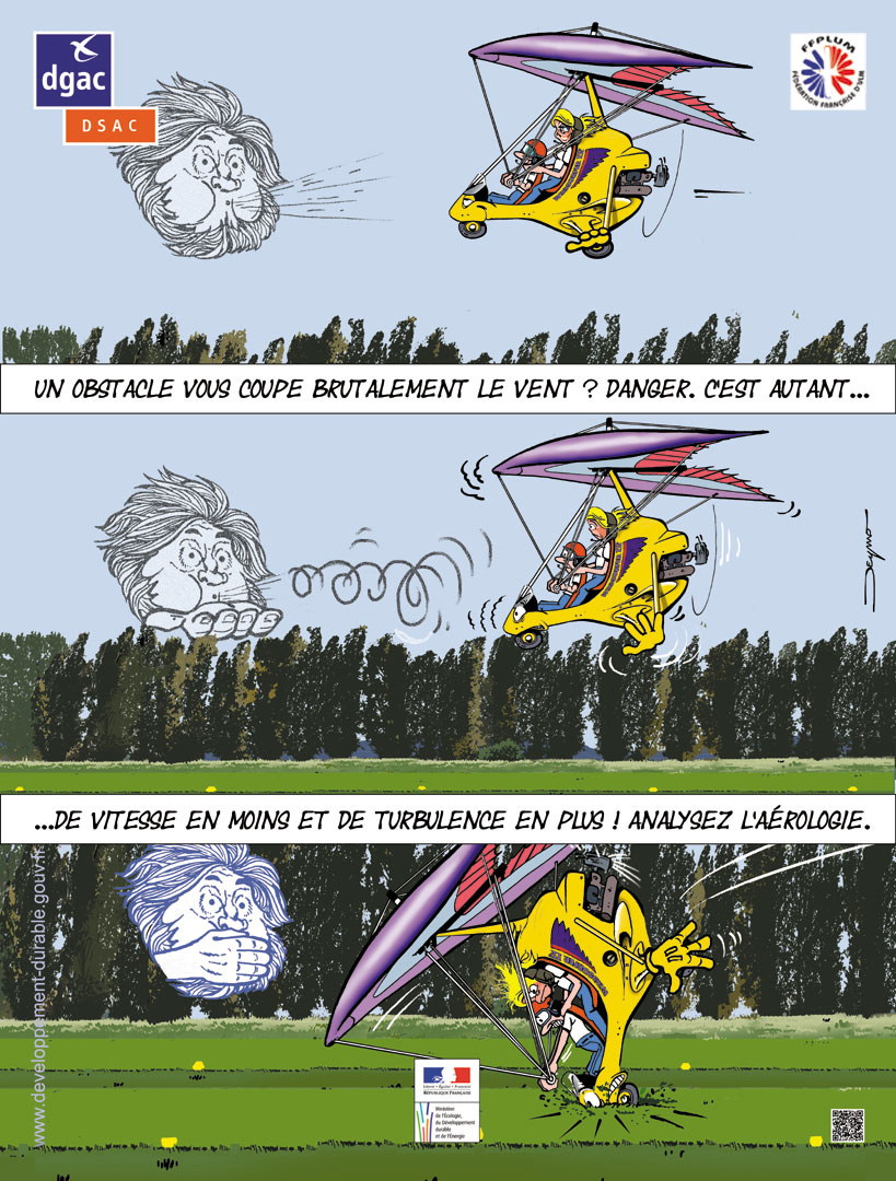 Sans compter qu’un obstacle génère aussi de la turbulence. Dans ce cas on a affaire à un gradient de vent vertical, avec souvent de la turbulence avant le masquage, comme sur l’affiche.