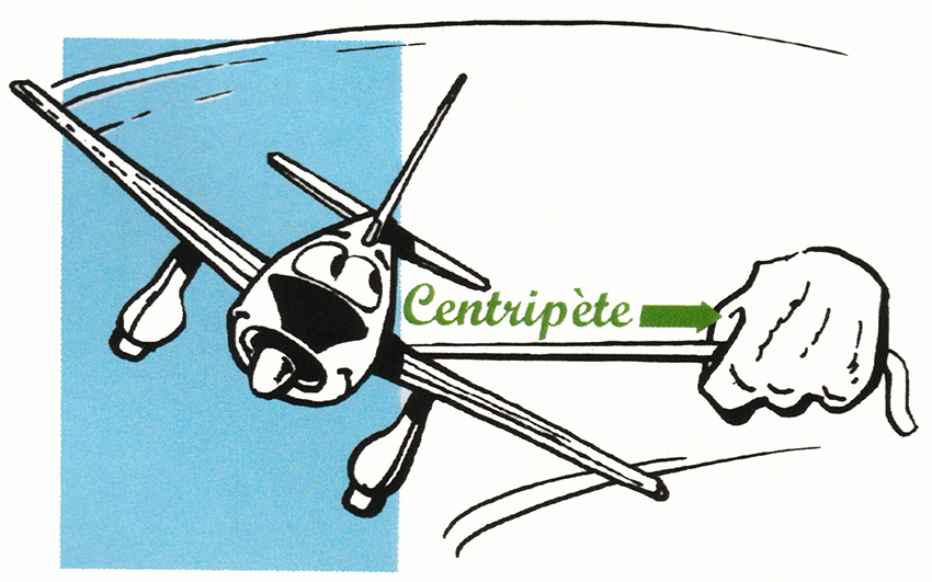 Le virage s’obtient par l’inclinaison de la portance, ce qui lui donne une composante horizontale centripète, au détriment de sa composante verticale. La composante horizontale de la portance est alors une force déviatrice qui induit le virage. Pour garder le palier, la composante verticale de la portance doit continuer d’égaler le poids. Il faut donc accroître la portance.