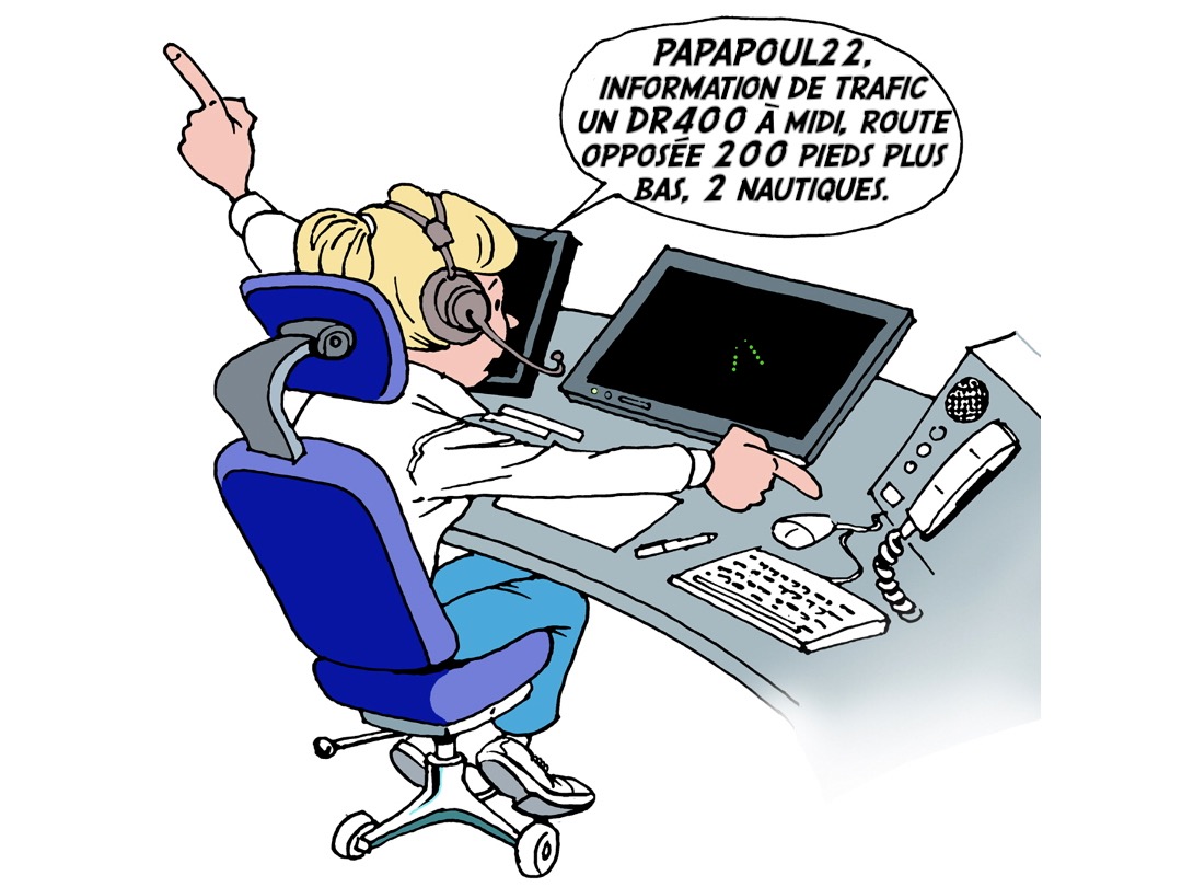 Le service d’information de vol, ressource très utile au VFR, n’offre aucune garantie de séparation entre les aéronefs, ne donne pas de clairances, et n’autorise donc pas la pénétration des espaces aériens contrôlés ou réglementés.