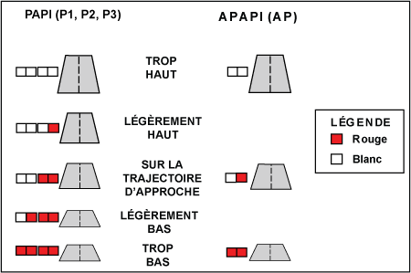 Un PAPI permet de savoir si on est sur le plan d'approche, au dessus ou au dessous. Mais un PAPI ne permet pas directement de visualiser le plan d'approche.